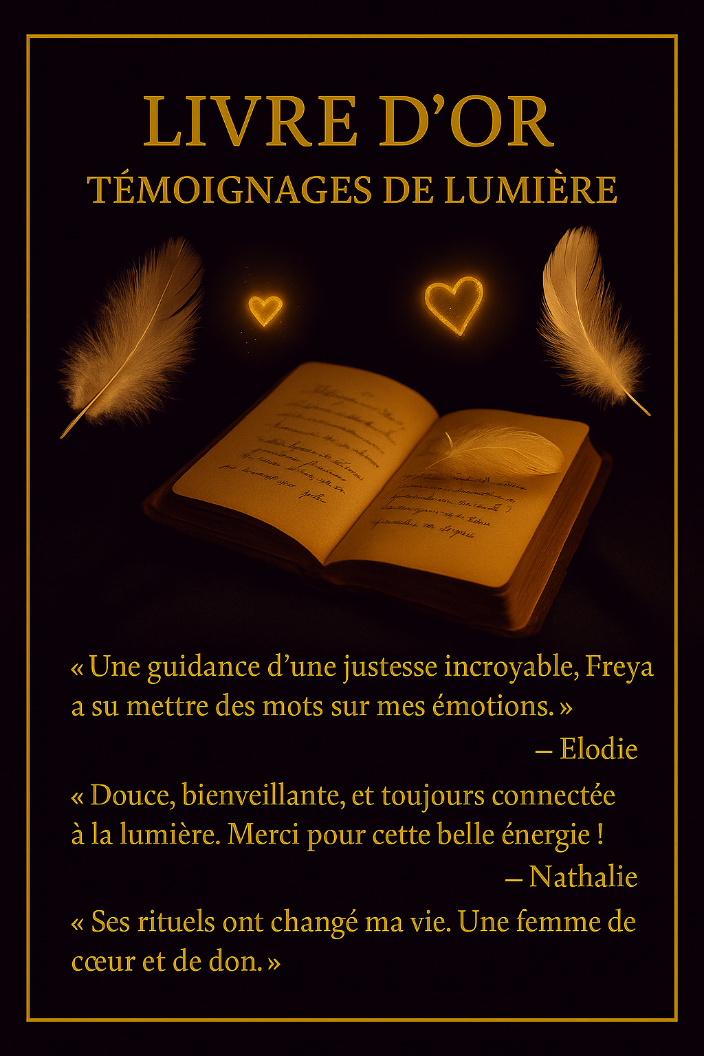 Les prestations proposées sont à visée spirituelle et ne remplacent aucun avis médical, psychologique, juridique ou financier.