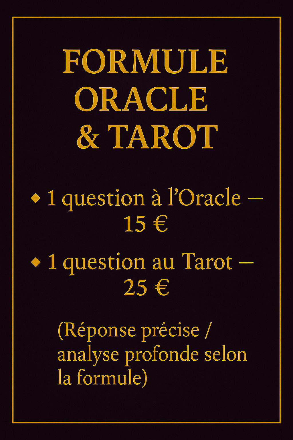 Que vous ayez une question précise ou besoin d’un éclairage complet, chaque tirage est réalisé avec soin, sincérité et respect.